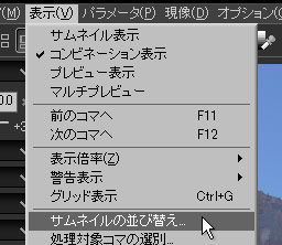3.3. サムネイル・ウィンドウ サムネイル・ウィンドウでは、コマを複数選択し、選択した複数コマに対する一括した操作がおこなえます。 3.3.1. コマの複数選択の方法 [CTRL]キーを押下しながらコマを左クリックすると、現在選択されているコマの選択状態を残しながらクリックされたコマも選択状態になります。この操作を繰り返すと、任意のコマを複数選択が可能です。 3.3.2. 複数コマへの操作 [SHIFT]キーを押下しながらコマを左クリックすると、現在選択されているコマを先頭に、クリックされたコマまでを選択状態にします。 [CTRL]+[A]キーまたは、メニューの[編集(E)]-[全てのコマを選択]で、全コマ選択をおこなうことができます。 矢印キーで選択コマの変更がおこなえます。 ※複数選択中は、現像パラメータの変更、プレビュー表示モードへの切り替えはできません。 複数選択しているコマへ、右クリックのコンテキストメニューの操作がおこなえます。 複数選択しているコマに対して有効な処理は、画像の回転、テイストの適用、現像パラメータの貼り付け/読み込み、バッチ現像、印刷、ファイル操作などです。 サムネイルが並ぶ順序の設定をおこないます。 メニューから [表示(V)]-[サムネイル表示設定]-[サムネイルの並び替え] を選択するか、もしくは「表示設定」ダイアログの[サムネイルの並び替え]をクリックすると、「サムネイルの並び替え」ダイアログが表示されます。 「サムネイルの並び替え」ダイアログで、どのような順序でサムネイルを並び替えるかのルールを設定します。 3.3.3.1. 各コントロールの解説