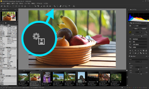 プレビューの更新は、アンシャープマスクやJPEGの品質係数を変更すると自動的におこなわれます。プレビュー画像全体の更新が終わるまでには現像処理の時間を要しますが、表示倍率の変更などで画像の一部を表示している場合は部分的に現像処理がおこなわれます。