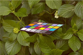 While "color temperature" and "color deflection" change the white balance of the entire image, the "dark adjustment" amends color casts of the dark portion of the image.Green or magenta color casts sometimes occurs in the dark portion although the white balance of the bright portion in a scene is well. In this case, you can amend color casts with this function, and you can continuously remove color fluctuation from the dark portion to the bright portion. For example, the left picture shows a sample of strong magenta casts in the dark portion. When using a gray patch of Macbeth chart, you will find that the bright patch is well white balanced, but the color of the dark portion becomes magenta. This affects the color of leaves (becoming yellow) and shadow (becoming red). This function drastically eases the problem which a white balance of only dark portion is shifted. The right picture shows what happened on the same picture when magenta casts is removed by the dark adjustment function.