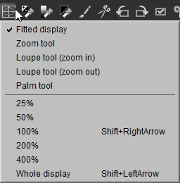 Changing display magnification is possible from the menu, even if the tool mode is "Fitted display". If the display magnification is changed, the tool mode will automatically switch to "Zoom tool".