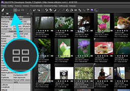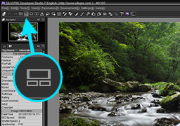 Displaying images for processing is done in two types of display windows. The first is a "Thumbnail window" that displays a list of images for processing. The other is a "Preview window" for large display of only one selected image. The "Preview window" offers functions that divide the window in two for comparing two images or comparing results from adjusting different development parameters of the same image. Five display modes are available in SILKYPIX® Developer Studio 7 through the combination of these two kinds of windows.