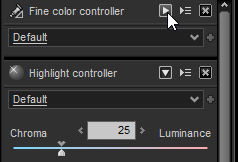 Sub-controls that can be displayed at all times may be located in a "Control Box". Multiple sub-controls can be located in a "Control Box". By selecting from icons and menus under "Parameters controls", sub-controls located in a "Control Box" can be scrolled to until their location is visible.