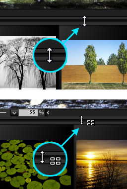 When clicking this button, the sort key selected on the (1) list will be moved lower of the list.. You can change the thumbnail size with the "Image width in thumbnail window" slider on the right of the toolbar. When the thumbnail window is located either above or below, you can change the size of thumbnails within the boundary between the preview window and thumbnail window to a range of one third from the right side by dragging up or down under In addition, if you align the mouse pointer to the remaining two thirds of the range and drag up or down under When the thumbnail window is located to either the left or the right, you can change the size of thumbnails within the boundary between the preview window or thumbnail window to a range of one third from the bottom by dragging left or right under In addition, if you align the mouse pointer to the remaining two thirds of the range and drag left or right under