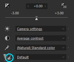 If a taste is selected from these dropdown lists located at the top of the sub-control, only the development parameter that can be adjusted by the same sub-control (*1) will be influenced.*1 “Sharpening” and “Noise reduction” sub-controls are an exception. Its sub-controls are divided to two parts despite one parameter category.