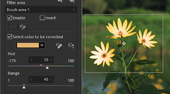 When the sub-controls “White balance”, “Tone”, “Color”, “Sharpening” and “Noise reduction” are displayed as floating windows, these dropdown lists will have the following in common with dropdown lists located at the top of each sub-control.