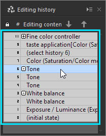 We recommend that you adjust development parameters on SILKYPIX in the following order: Exposure bias, White balance, Tone, Color, Sharpening, and Noise reduction.
