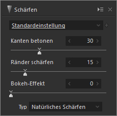 Sie können des Weiteren Bilder mit korrekter Farbtemperatur erhalten, indem Sie die entsprechenden Einstellungen beim Entwickeln auswählen.Schärfe einstellen / Rauschreduzierung