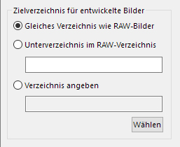 * Aufgrund der Eigenschaften der „Pixel-Shift-Aufnahme RAW-Komposition“ werden während der Komposition keine Entwicklungsparameter angewendet, unabhängig vom gewählten Ausgabeformat.