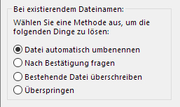 Falls Dateinamen reserviert sind, weil entsprechende Aufgaben in der Stapelverarbeitung vorgemerkt sind, werden diese ebenfalls als “reserviert” markiert angezeigt.