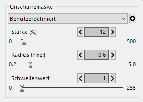 Zudem können Sie Ihre aktuell gewählte Einstellung als neue Vorliebe registrieren, wenn Sie auf das Plus-Symbol neben der Liste klicken.Stapel-Entwicklung