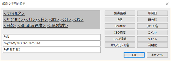 通常印刷の場合にのみ有効となる項目で、印刷に撮影日時を焼き込むことができます。