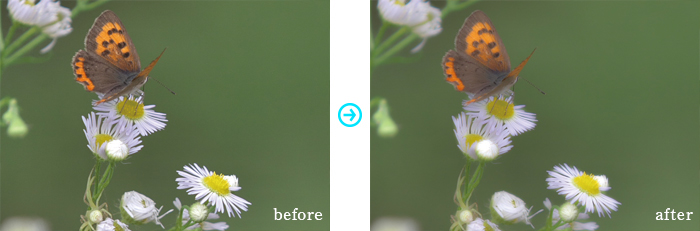 明瞭度を上げると、被写体の細部をより「くっきり」とした写真に仕上げることができるので、全体的に眠い風景写真の質感を蘇らせたい場合などに効果を発揮します。 ![]() また、明瞭度を下げると、女性やお子様のポートレート写真、マクロ写真では、柔らかい雰囲気のソフトフォーカスのような写真に仕上げることができます。 ![]()