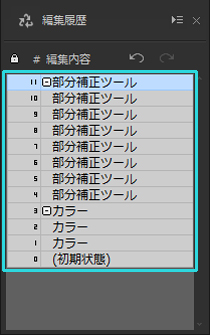 表示されている履歴項目をクリックすることで、選択した編集位置の編集内容を復元します。
