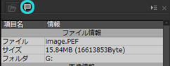 4.20.1. ファイル情報 選択されている画像ファイルのファイル情報が表示されます。 4.20.2. 画像情報 このカテゴリの項目の編集は行えません。 「固有情報」にはファイル・フォーマットに関する情報が表示されます。 SILKYPIX®で未対応のフォーマットの場合や、破損したファイルの場合に情報が表示される場合がありますので、選択されている画像がプレビュー表示されない場合にはこの情報を参考にしてください。 「編集日時」には、SILKYPIXで最後に編集した日時が表示されます。 これは、SILKYPIXが自動的に記録している現像パラメータの編集日時です。現像パラメータの編集がおこなわれていないコマや、現像パラメータの初期化がおこなわれたコマには表示されません。 主にRAWデータやJPEG/TIFF画像のExif情報に記録されている情報で、画像に関する情報や、画像の付帯情報がここに表示されます。 4.20.3. 撮影情報 「レーティング」と「コメント」は編集可能な項目です。 主にRAWデータやJPEG/TIFF画像のExif情報に記録されている情報で、撮影時のカメラの設定などの撮影情報がここに表示されます。 4.20.4. GPS情報 「撮影日時」、「ISO感度」、「シャッター速度」、「絞り値」、「焦点距離」、「使用レンズ名」の編集が可能です。 カメラに設定されていた日時が誤っていた場合の訂正や、マニュアルレンズなどを使用した場合などで、撮影情報が正しく記録されていない場合に自由に編集していただくことを想定しています。 現像結果のJPEG/TIFF画像に記録される場合、「使用レンズ名」はXMPに準拠した方式で記録され、その他の情報はExif情報として記録されます。 主にRAWデータやJPEG/TIFF画像のExif情報に記録されている情報で、GPS等による位置情報がここに表示されます。 4.20.5. IPTC情報 各項目は編集が可能です。 IPTC(International Press Telecommunications Council)に準拠した情報の編集が行えます。 RAWデータやJPEG/TIFF画像に、IPTC規格もしくはXMP規格でIPTC情報が記録されている場合にはそれらが初期値として表示されます。 4.20.6. 項目の編集 現像結果のJPEG/TIFF画像に記録される場合、IPTCとXMPの2つの規格に準拠した記録方式で記録します。 画像のプロパティには編集が可能な項目があります。 4.20.7. IPTC情報テイスト 編集した内容は、現像結果をJPEG/TIFF画像に保存する際の画像の付帯情報に反映されます。 RAWデータに記録されている画像のプロパティを訂正する場合、記録されていない情報を追加する場合、または、現像結果をJPEG/TIFF画像に保存する際の画像の付帯情報として記録しない場合に活用してください。 編集可能な項目には、「情報」の右端に以下のいずれかのアイコンが表示されます。 アイコンの表示されていない項目は編集することはできません。