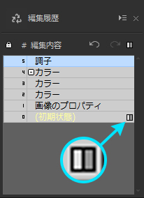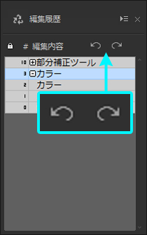「編集履歴」サブコントロールの 、 の機能を使って、選択しているコマに対する編集状態を戻したり進めたりすることができます。