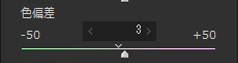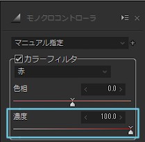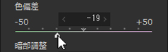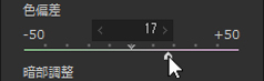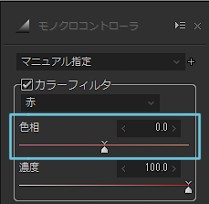 「-5.0」から「5.0」まで、スライダーで調整します。シミュレートするフィルタの色相を補正します。
