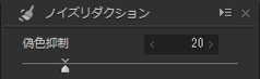 このパラメータは、輪郭強調によりノイズが強調されてしまうことを防ぐ場合に使用します。 通常は、1でお使いいただき、ノイズが強調されすぎていると感じる場合には少しずつ大きくして、解像感とノイズのバランスをとってください。 4.7.3. ノイズリダクションの調整 ノイズとは、高感度撮影時におきるざらざら感のことです。これを本ソフトウェアでは高周波ノイズと呼ぶことにします。 また、高感度撮影時には、ざらざら感の他に赤や緑、青といったノイズも発生し、これを本ソフトウェアでは色ノイズと呼びます。 これらのノイズを除去する機能がノイズリダクションです。 また、これはノイズではありませんが、シャープネス時に発生する輪郭周辺の色づきを緩和するには、黒ぶち色づき抑制を使用します。