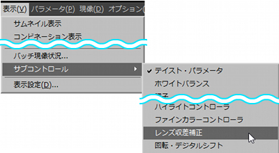 このチェックボックスがチェックされている項目は、現像結果をJPEG/TIFF画像に保存する際に、画像の付帯情報として記録されません。 初期値が設定されていない項目は、初期状態でチェックされています。 現像結果をJPEG/TIFF画像に保存する際に、画像の付帯情報として記録したくない項目に対して、明示的に設定することが可能です。 「撮影日時」は特殊な扱いをしているので、ここで他の項目とは分けて説明します。 「撮影日時」の設定は、主にカメラで記録した撮影日時が誤っていた場合に、「撮影日時」を訂正することを想定しています。 カメラの設定時間が狂っていた場合など、撮影した写真の全ての撮影日時を訂正する場合を考えて、設定した「撮影日時」は時間差で管理します。 ですので、1つのコマで「撮影日時」の編集をしていただき、その内容を他のコマにコピーすることで、一括して「撮影日時」の訂正をおこなうことができます。 スキャナで取り込んだ画像など、「撮影日時」が記録されていない画像が画像処理対象の場合、初期の「撮影日時」としてファイルの更新日時を使用します。 この場合、「画像のプロパティ」の「撮影日時」の項目の末尾に「(更新日時)」と表示されます。 IPTC情報に対してテイストを作成する事ができます。 4.20.8. レンズ名を登録 よく使うIPTC情報は「テイスト」として登録しておくことで、簡単に呼び出すことができます。 テイストの使い方の詳細は 「4.1.1. テイスト」を参照してください。 レンズ名を登録するための機能です。 レンズ名は、サードパーティ製のレンズを使用している場合など使用するカメラやレンズによっては、使用しているレンズとは違うレンズ名が表示される事があります。 その場合に毎回レンズ名を変更する手間を省くために、レンズ名を登録できます。 レンズ項目編集ダイアログで登録したいレンズ名を入力し、「登録」を押すと、以降そのレンズのレンズ名は登録したレンズ名が表示されるようになります。 この機能は、レンズを判別できる情報が画像データから取得できる場合のみ使用できます。 カメラやレンズによってはこの機能は使用できない場合があります。使用できる場合にレンズの項目編集ダイアログの「登録」が有効となります。 4.21. その他 4.21.1. 有効・無効の設定 現像パラメータの中に「有効・無効」の設定ができるものがあります。 「ファインカラーコントローラ」、「レンズ収差補正」、「回転・デジタルシフト」のサブコントロールにこれらは存在します。 4.21.2. ダイナミックデフォルト 「ファインカラーコントローラ」ではサブコントロール全体、「レンズ収差補正」では3つのブロックに分かれて現像パラメータの有効・無効を切り替えられるようになっています。 パラメータブロックが無効の場合、パラメータブロックを構成する現像パラメータの値がどんな値であっても等価な状態となります。 撮影時の機種 (撮影素子の種類やサイズ、解像度等) やRAWデータの撮影時の情報 (ISO感度等) を元に、弊社が最適と考えた値に一部のパラメータ初期値を変更する機能です。 WBの撮影時情報、レンズ収差補正のシェーディングの画角、回転・デジタルシフトの画角、シャープネス(輪郭強調、偽輪郭抑制)、NR(偽色抑制、ノイズ除去)、現像設定(デモザイク精鋭度)、ハイライトコントローラ(明部補償、ダイナミックレンジ)の初期値が動的に変わります。 パラメータ初期値が「初期値」の場合に有効です。 「初期値」以外の場合でも、WB、シャープネス/NR、現像、ハイライトコントローラ、等ダイナミックデフォルトの機能を使いたい補正部分にパラメータを適用しない部分テイストを用意し、それをパラメータ初期値として設定すれば有効になります。 また、カメラで設定した縦横比(アスペクト)からトリミング領域設定の初期値が動的に変化する場合もあります。(詳しくは「4.14.5 カメラで縦横比(アスペクト)を設定したRAWデータについて」をご参照ください) この機能の搭載により、写真(RAWデータ)をカメラから取り込み最初に開いた状態から、上に挙げた各パラメータの初期値が、撮影時の情報を元にそれぞれSILKYPIXがお薦めする、より良好な画質で表示します。その為、後工程としてパラメータ調整の追い込み作業を行う場合においても、各撮影条件に合わせた調整が施されている状態からスタートできますので、円滑に進めることができるでしょう。 4.21.3. macOS でのマウス・キーの操作について このマニュアルでは2ボタン以上あるマウスを使用した場合を想定して記述しています。また、説明内容はWindows版の動作を元に記述しています。 macOSでご使用の場合は以下に置き換えて操作してください。