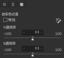 歪曲を自由にコントロールできるレンズを手に入れた気分になって、いろいろなパラメータの組み合わせをお楽しみください。 きっと、新しい表現が見つかることと思います。 倍率色収差補正 倍率色収差とは、レンズに入射した光の波長によって屈折率が異なるために、RGBの光が結像する倍率にずれが生じることで発生する現象です。 Rの結像倍率と、Bの結像倍率を微小に変化させることで、倍率色収差補正をおこないます。 まず、周辺部分のエッジの色づきが気になる部分を400%以上に拡大表示します。 次に、色収差を見やすくするために、「ノイズリダクション」サブコントロールの「偽色抑制」パラメータの値を小さく(0 ~ 80 程度)していきます。 それから、「倍率色収差」のチェックボックスをチェックして倍率色収差補正を有効にし、R適用率とB適用率の調整に入ります。 補正作業をおこなう際は、下の補正前や補正後の図のように周辺部を拡大表示して結果を確認しながらパラメータを調整してください。 4.11.3.1. R適用率 赤い光の結像倍率を調整します。エッジに赤または、その補色のシアンが強い場合には、まずこのパラメータを調整します。 4.11.3.2. B適用率 青い光の結像倍率を調整します。エッジに青または、その補色のイエローが強い場合には、まずこのパラメータを調整します。 4.11.3.3. 倍率色収差補正ツール 2つのパラメータが両方とも最適になったときに、色づきが最も少なくなります。 まず、エッジの状態を見て、「赤<-->シアン」がエッジの両側の色づきで少なくなるようにR適用率を調整し、次に残留した「青<-->イエロー」の色づきをB適用率で調整します。何度かR,B適用率を繰り返し調整することで、最適なポイントが見つかります。 調整のポイントは、色づきを少なくするという観点ではなく、エッジの色づきを均一にさせるという観点で調整をおこなってください。その後、「ノイズリダクション」サブコントロールの偽色抑制スライダーを上げていくと、残留した色づきが消えていきます。気にならない程度まで上げたら、補正は完了です。 この際、偽色抑制を最大まで上げても消えない色づきが残る場合には、倍率色収差が大きすぎて補正範囲を超えているか、あるいは軸上色収差など、倍率色収差以外の収差によって発生している色づきの可能性があります。背景が飛んでいるような明るさの場合には、コマ収差による色づきの可能性があります。 倍率色収差以外のレンズ収差よる色づきは、今のところ補正できません。