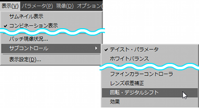4.12. 回転・デジタルシフト メニューから、[表示(V)]-[サブコントロール]-[回転・デジタルシフト]を選択すると、回転・デジタルシフトダイアログが表示されます。右下にあるサブコントロール・アイコンの アイコンからも表示できます。