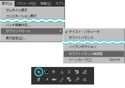 ホワイトバランスを調整する際には、色温度、色偏差により明るい部分のホワイトバランスを先に決めます。次に、暗部の色づきが気になる場合に、暗部調整をおこなってください。