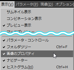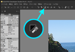 マルチプレビューが参照プレビューモードの場合、参照プレビューの表示に編集内容を適用することができます。表示対象の編集内容の右端にマウスカーソルを移動すると、 がマウスオーバーにて表示されます。この状態で、指定する編集内容をクリックすると、指定した編集内容を参照プレビューに適用します。 ※ 常時表示されている は、その編集内容が参照プレビューとして現在表示されていることを示しています。 4.20. 画像のプロパティ 現在、選択している画像のプロパティを表示します。 メニューから [表示(V)]-[画像のプロパティ] を選択してください。 メインコントロール部の ![]() 「画像のプロパティ」サブコントロールは、画像のプロパティ情報を閲覧するためのコントロールでもありますが、同時に画像のプロパティを編集する機能も備えています。 RAWデータに記録されている撮影情報が間違っている場合に訂正したり、記録されていない情報を追記したりすることができます。 コメントの編集もここでおこないます。 IPTC(International Press Telecommunications Council)に準拠した情報の付加をおこなうこともできます。 特定の情報のみを記録しない設定もできます。 ここで編集した内容は、SILKYPIX®で現像処理した結果のJPEG/TIFF画像に記録されます。