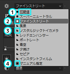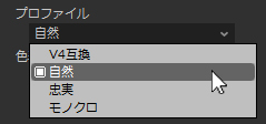 「V4互換」は、SILKYPIX® Developer Studio Pro、SILKYPIX® Marine Photography Pro 4.0 または SILKYPIX® Developer Studio 4.0 以前のパラメータ情報がある場合に、その色作りを引き継ぐプロファイルとなります。以前のバージョンで調整をおこなった際の色調を維持する場合にご使用ください。