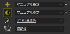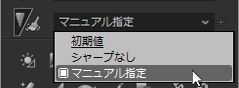 テイストのドロップダウンリストが閉じている状態では現在の設定が表示されています。 パラメータ初期値については、「9.5. パラメータ初期値の設定」をご参照ください。登録されているテイストのいずれかが選択されている場合は、選択されているテイストの名称が表示されます。部分テイストの名称はここには表示されません。 それ以外に「初期値」、「マニュアル指定」、「マニュアル(テイスト適用)」と表示される場合があります。