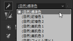 代表的な現像パラメータの組み合わせは、メーカーテイストとしてSILKYPIXにあらかじめ登録されています。 これらを活用して、簡単に現像パラメータの調整をおこなうことができます。 ドロップダウンリストを開いて、適用する「テイスト」を選択します。 すると、テイストに登録された現像パラメータが反映されます。 テイストには、現像パラメータがまるごと置き換わる「全体テイスト」と、現像パラメータの一部がセットされる「部分テイスト」があります。 「部分テイスト」の適用は、「現像パラメータの部分貼り付け」と等価の動作をします。